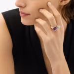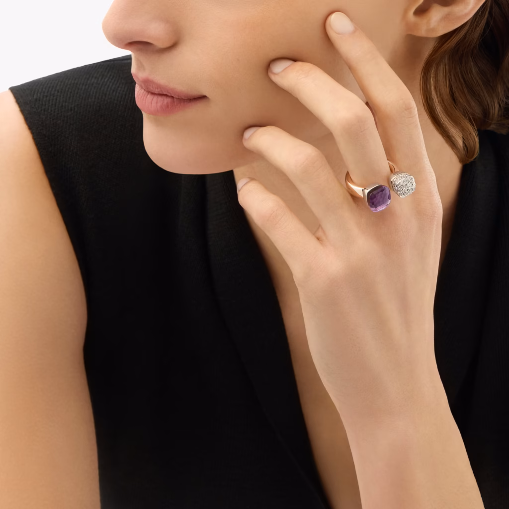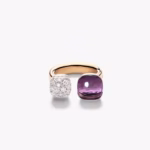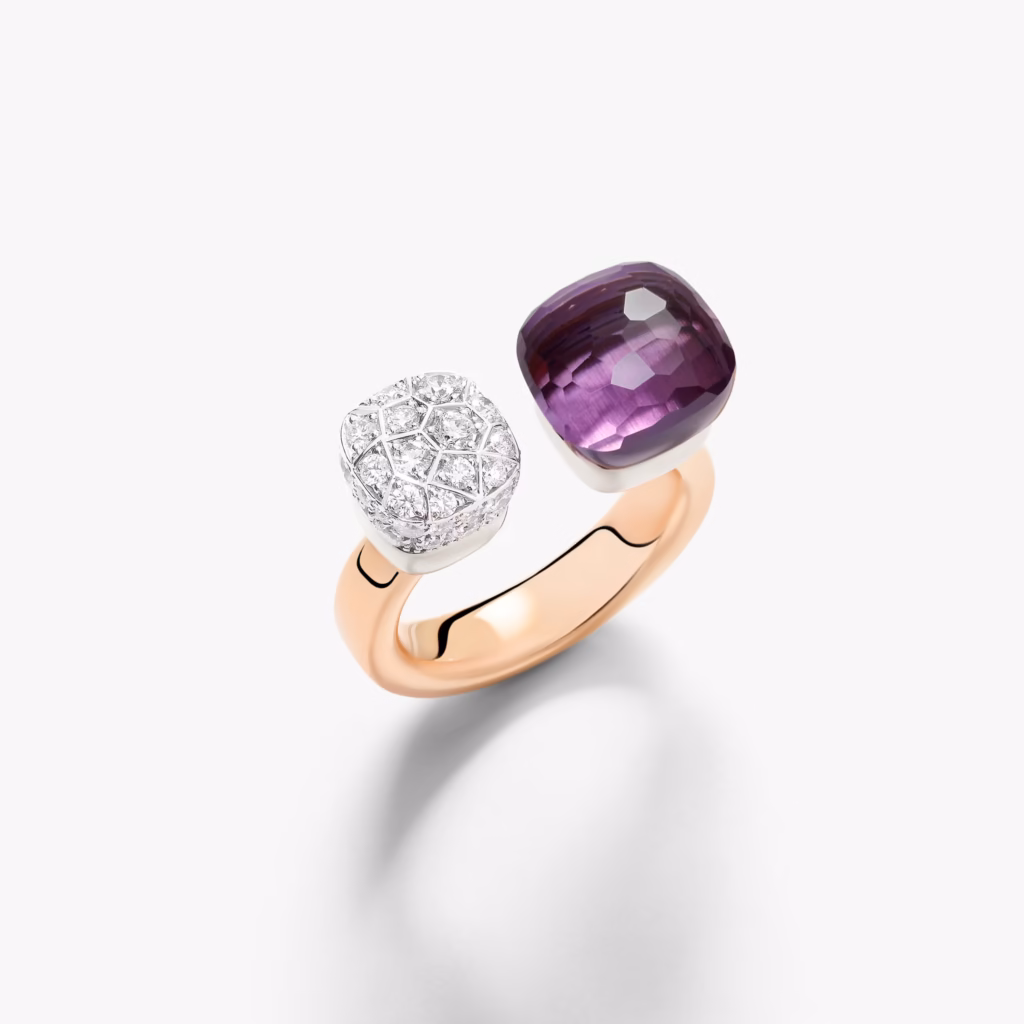 Ring 18kts rose and white gold with 1 amethyst and 39 white diamonds
